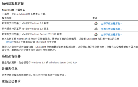 2、打开页面,往下拉,可以看到不同系统版本对于的补丁下载入口,选择你的系统对应。