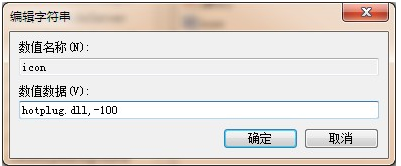 4、点击“Remove USB”在窗口右侧空白处单击右键,选择“新建”—“字符串值”,命名为“icon”,双击打开字串符,将数值数据修正为“hotplug.dll,-100”;