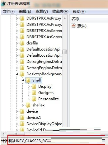 2、在注册表左侧依次展开”HKEY_CLASSES_ROOT”——“DesktopBackground”——“Shell”;