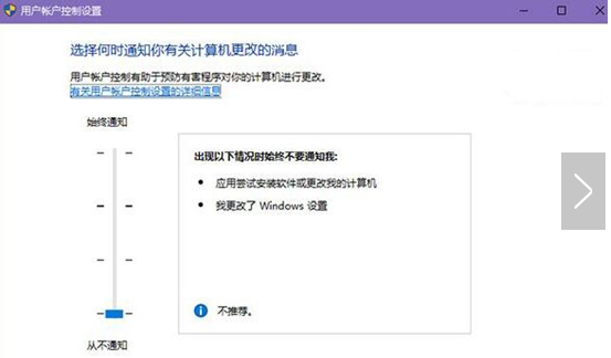 2、将安全级别设置为最低(即“从不通知”)即可。