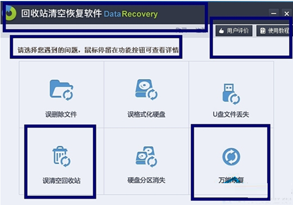 用户除了通过系统本身恢复回收站删除的文件,还可以通过第三方软件找回文件。下载并安装回收站情况恢复软件,在主页面中点击万能恢复就可恢复文件了。