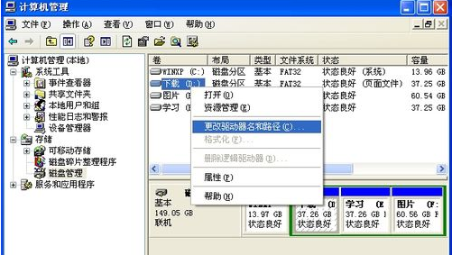 3、右键点击【下载(D:)】(根据自己的磁盘而定,本机采用D盘为例)→选择【更改驱动器名和路径】