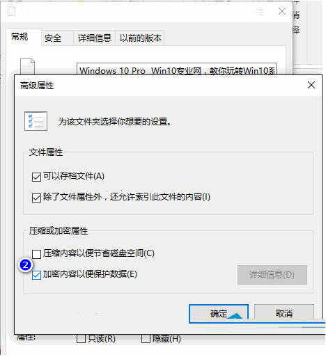 2、即可看到“加密内容以掩护数据”选项是处于勾选状态的。取消勾选“加密内容以掩护数据”即可。
