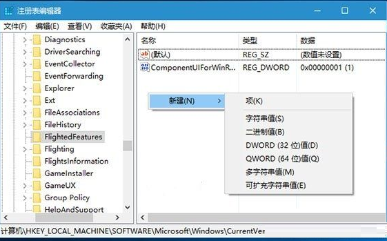 HKEY_LOCAL_MACHINE\SOFTWARE\Microsoft\Windows\CurrentVersion\FlightedFeatures