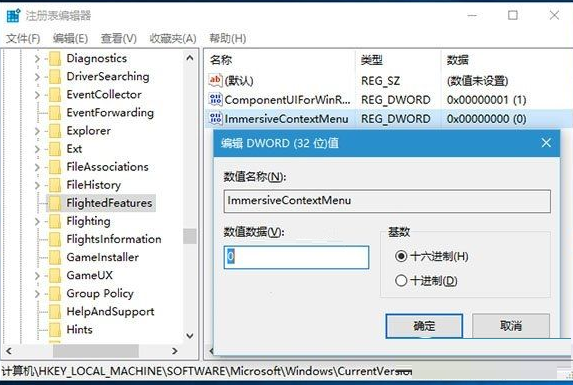 4、双击ImmersiveContextMenu,将其值修正为0即可。
