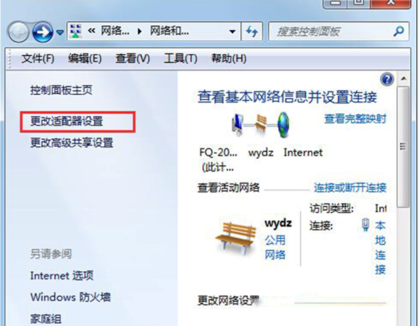 1、右键点击右下角网络图标,打开网络和共享中心,然后点击更改适配器设置;