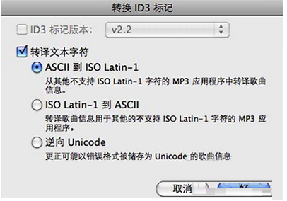 2、然后取消id3标记版本,选择下面的转译文本字符如下图,选择第一个 ,点击【断定】。