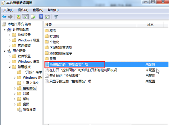 2、在组策略中依次展开【用户配置】-【管理模板】-【把持面板】;