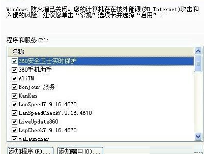 7、然后点击打开“程序与服务”查看是否有QQ运行程序,如果没有,请点击下方的“添加程序”将它添加进去即可