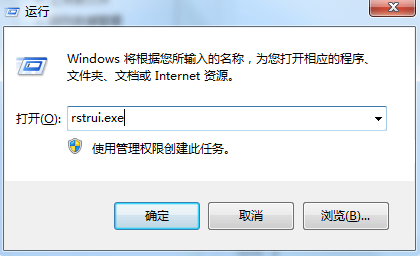 2、按“Windows+R”输入“rstrui.exe”还原一下系统;