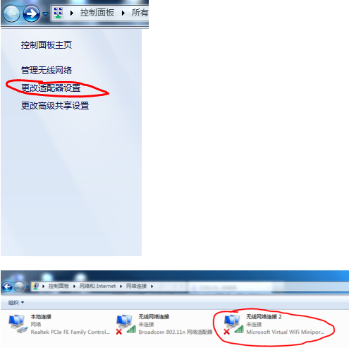 3、此时,打开网络和共享中心,点击左侧的“更改适配器设置”,如下图所示,就会看到多出一个网卡来。