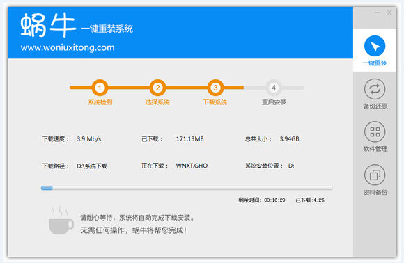 选择的系统会主动下载文件安装,你只需要等候即可,接下来都是主动安装的,出去喝个茶抽根烟,画个妆都可以。