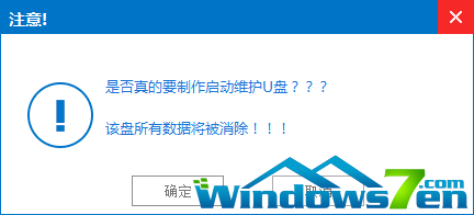 3、接着是会弹出一个提示界面,大家这时选择“断定”就可以了。对于此过程是会格式化U盘,大家在断定前最好把数据都转移了。