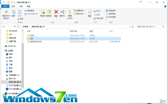 6、此时,我们可以将之前下载好的雨林木风win7系统解压后得到WIN7.GHO文件,然后并将其拷贝到U盘启动盘的GHO文件夹下。