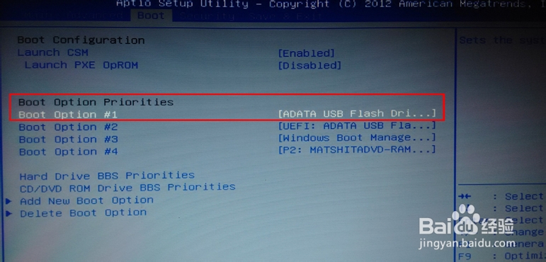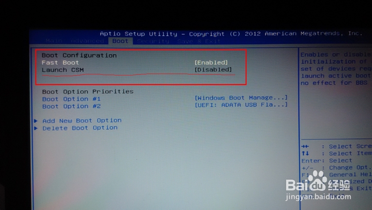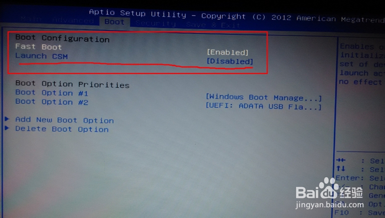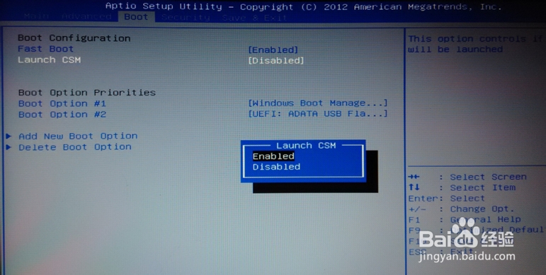 然后我们在BOOT 菜单下的Launch CSM 便显示可设置状态。