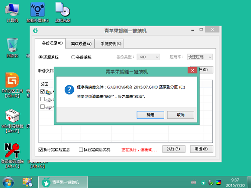 4. 青苹果pe装机工具将会自行加载系统镜像包的安装文件,然后持续选择系统将要安装的地位,一般装在C盘,断定无误后点击“断定”如下图所示: