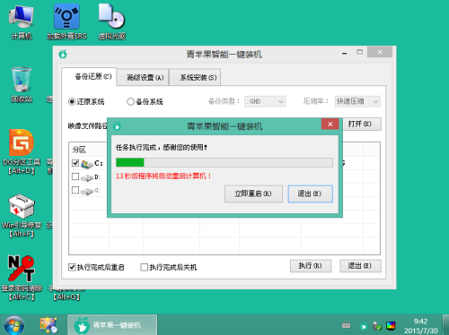 6.随后工具开端工作,我们需要耐心等候几分钟,待完成时会有重启电脑的提示,点击“是”完成安装。如下图所示: