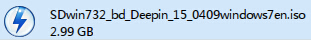 1、首先找到你所下载的深度技巧32位win7系统,鼠标右键单击win7镜像文件。在弹出的里选择“SDwin732_bd_Deepin_15_0409windows7en”,这样我们解压出来的系统文件就会跟当前深度技巧win7系统镜像文件在同一个硬盘地位,方便查找。
