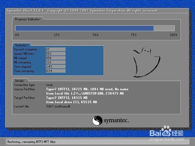 当我们操作完以后,就可以基础不用管了,因为只要用教程中所说的系统或者Ghost硬盘安装器就可以全主动完成所有安装步骤。那么我们现在为方便大家可以把安装截图给大家看一下!