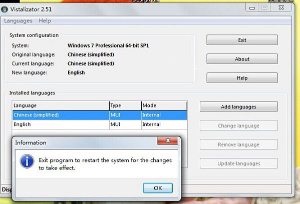 步骤三:安装完毕语言包后,系统会提示你需要重新启动电脑,如下图所示。