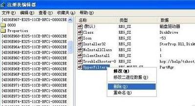 右键点击“UpperFilters”和“LowerFilters”,选择删除即可。