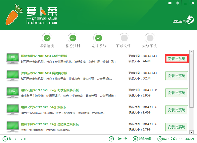 第三步:根据您的应用习惯以及电脑的硬件配置情况选择一个合适您电脑的系统版本,点击相应的“安装此系统”按钮。