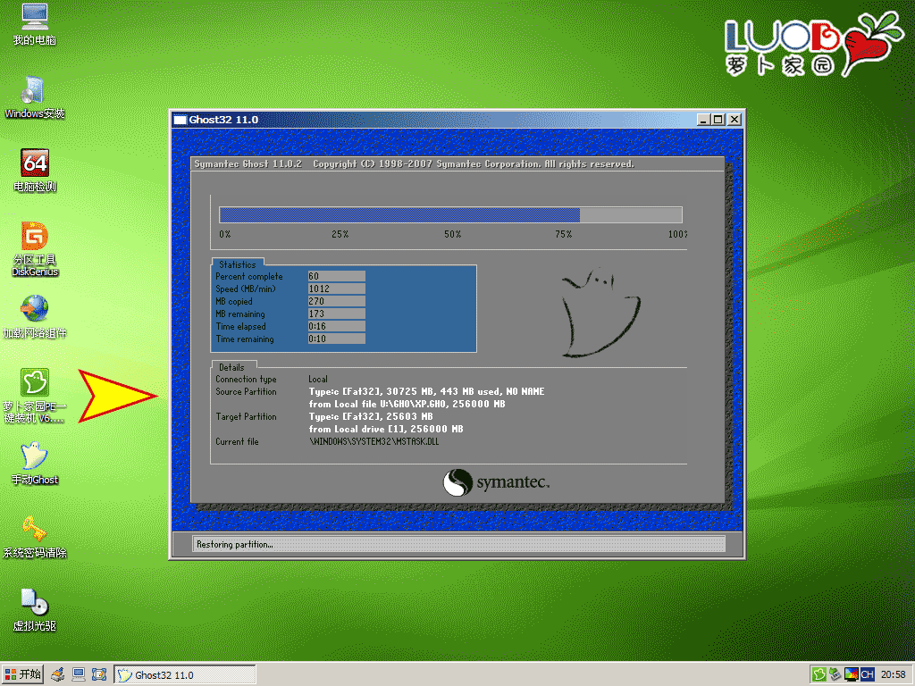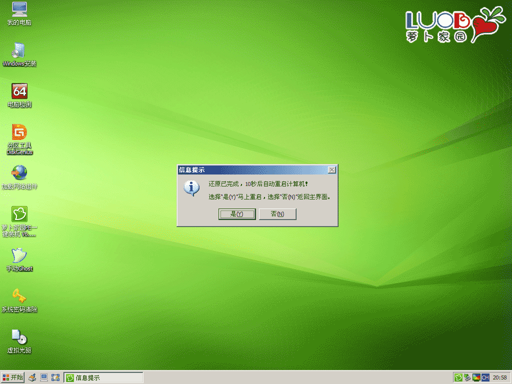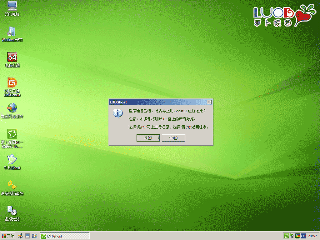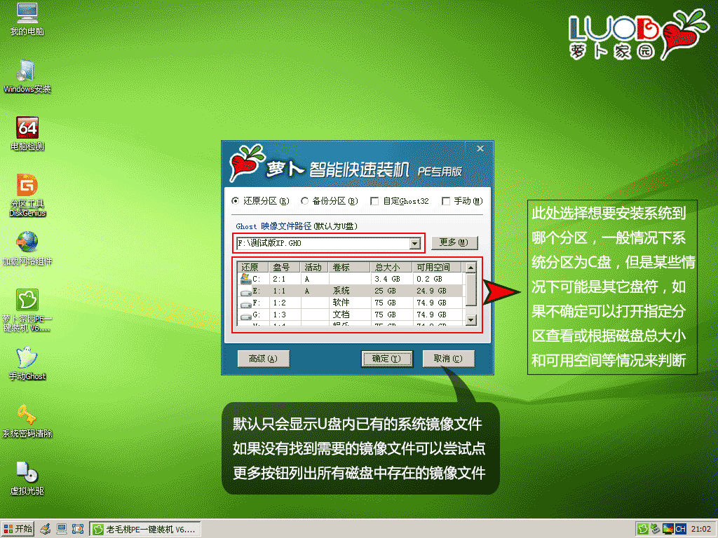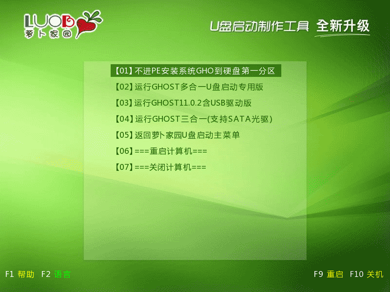 第二步:用萝卜家园U盘装系统软件作启动盘