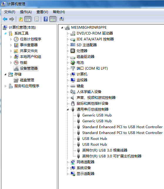 如果USB设备驱动安装正确,会在这里有正确显示,安装不正确会有黄色符号显示