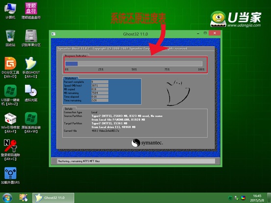 2、进入PE系统后,双击桌面上的“U当家一键装机【Alt+Z】”图标,(或者可以同时按下快捷组合键“Alt+z”)开端老鸟Win10升级助手的旅程。