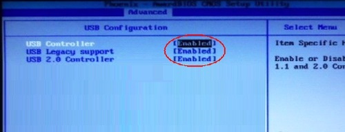 3.进入“USB Configuration”后,将所有项都改成“Enabled”,按高低方向键选中后按回车由“Disabled”改为“Enabled”即可: