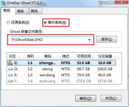 2、 首先我们来看看“备份系统”选项,一般大家在进行系统重装后,并且安装了一些重要的软件之类,或需要对旧的系统进行材料备份,那么就可以应用“备份系统”选项。大家可以对备份的Ghost映像文件存放路径进行设置。