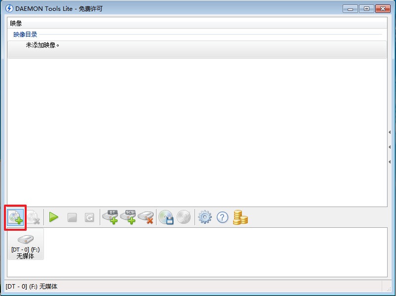 1、 打开安装好的Daemon Tools软件后,点击左下角的添加按钮,并且选择win7系统镜像进行一键系统安装iso镜像文件。