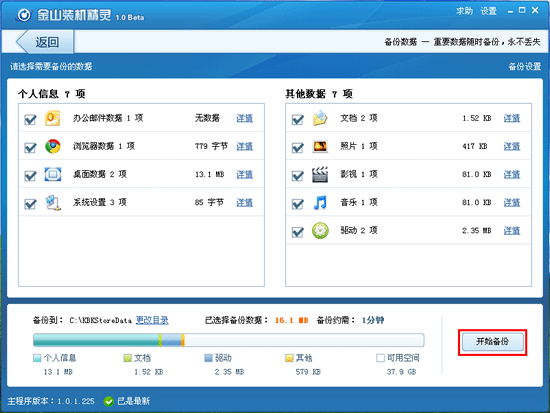 第二步:备份数据。可以快速备份QQ、MSN、旺旺等聊天记载,我的文档、桌面、IE收藏夹、邮件等重要个人数据,确保永不丧失,重装完成后可进行还原。