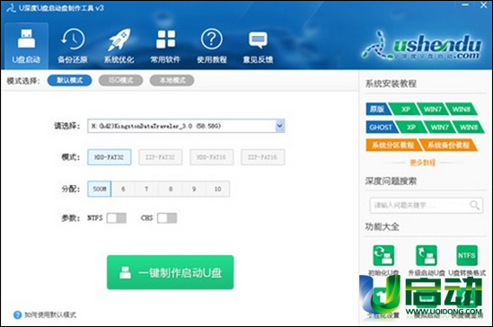 u深度u盘启动盘制作工具是一款专业的启动盘制作工具。通过不断的改良优化,其实现了一键制作出启动u盘,操作更加简略方便。同时u深度的兼容性特点使其更受盘算机专业人员所爱好,u深度基础上能够兼容目前市面上常用的所有操作系统,在应用时,也具有系统转换的功效,更合适较为专业的盘算机爱好者应用。同时,u深度简约的界面作风和系统的纯度,体现了其制作u盘启动代码的优越性,使其制作启动u盘成功率达到100%。
