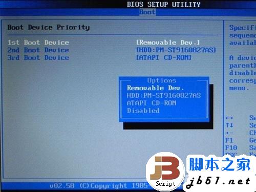 进入BIOS设置后,我们找到“BOOT”设置项来设置启动设备,也有的笔记本需要在“高级芯片组”设置项中设置,在其中我们能找到“1st Boot Device”来设置第一个启动的设备,笔者这台机器的设备显示为“Removable Dev.”显示为移动设备,各种本本之间显示的设备名称不太雷同,但基础上都是选择USB或者移动设备来启动盘算机。选择完毕之后我们存储BIOS设置并离开,这时盘算机会重起。