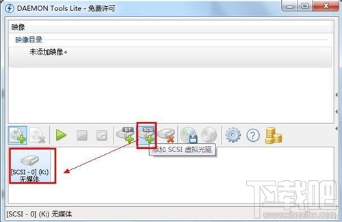 2、运行“精灵虚拟光驱”程序,在打开的主界面中点击“添加SCSI虚拟光驱”按钮,就可以在窗口下方成功添加一个虚拟光驱了。同时也会在“我的电脑”面板中创造生成了一个新的光驱盘符;