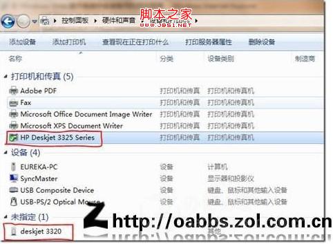以一款特别打印机HP deskjet 3325为例,演示在Windows 7中安装驱动程序的步骤。