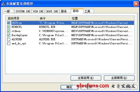 2.打开“系统配置实用程序”窗口,切换到“启动”标签,将下面不需要的启动项目去掉复选框,然后单击“断定”按钮。