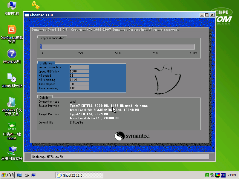 5、插上u盘,重新启动盘算机,会涌现装系统界面,按照提示进入pe,会自己弹出,你只需要点击断定就行,会自己复制系统文件,完了之后会重启,断定重启,拔掉u盘,等候安装完成绩行。
