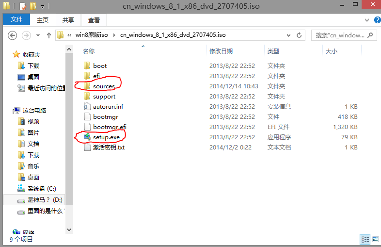 解压安装镜像。提前将安装镜像ISO文件解压出来,但不要放在欲装WIN8的分区中;