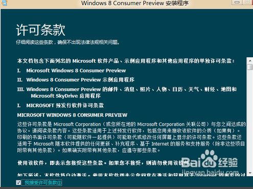 持续下一步,和所有软件和程序安装一样,是协议的界面,勾选上“我吸收允许条款”后持续下一步: