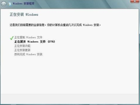 和安装WIN7一样,需要展开系统文件,这次比较慢,系统会动履行;