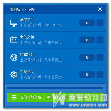 2、点击立即重装后,闪兔系统重装大师会让您备份电脑上的重要材料,包含“我的文档”、“收藏夹”、“桌面”材料,如果您有需要可以备份材料,如果没有重要材料可以直接点击取消进入下一步。如图二