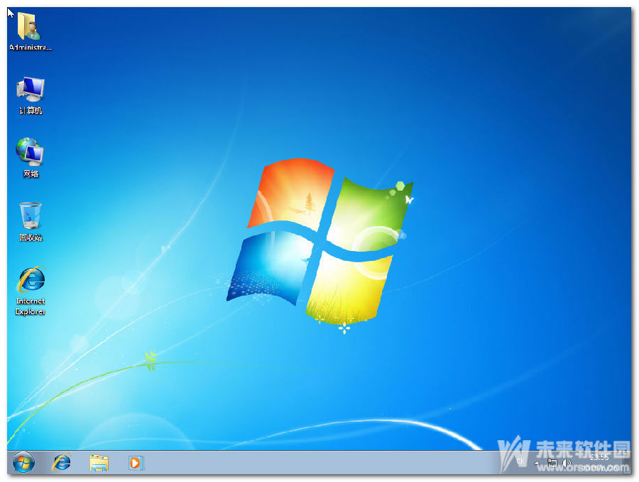 6、经过一段时间的等候后,闪兔一键系统重装完成。下面是闪兔专属windows7 32位操作,专属的闪兔重装系统,干净整洁的桌面,您是否爱好呢