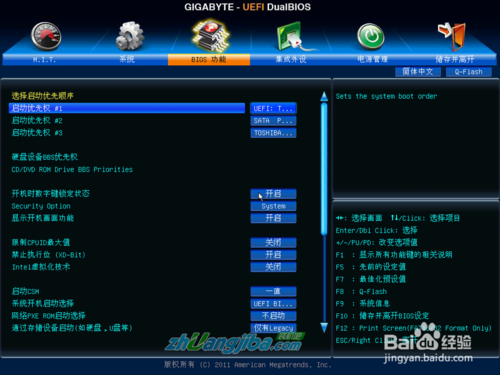 附:目前,新款的主板基础支撑中文BIOS菜单,如下图为H61的技嘉主板开机第一界面图
