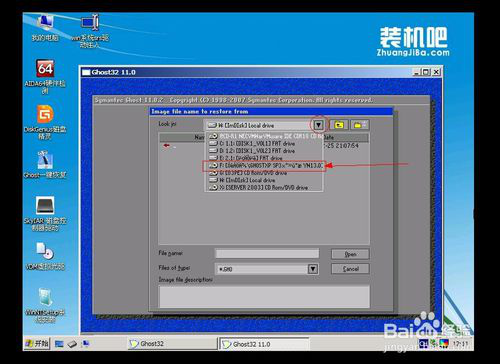 按回车进入后,选中你要还原的镜像(GHO文件),点击Open或直接按回车